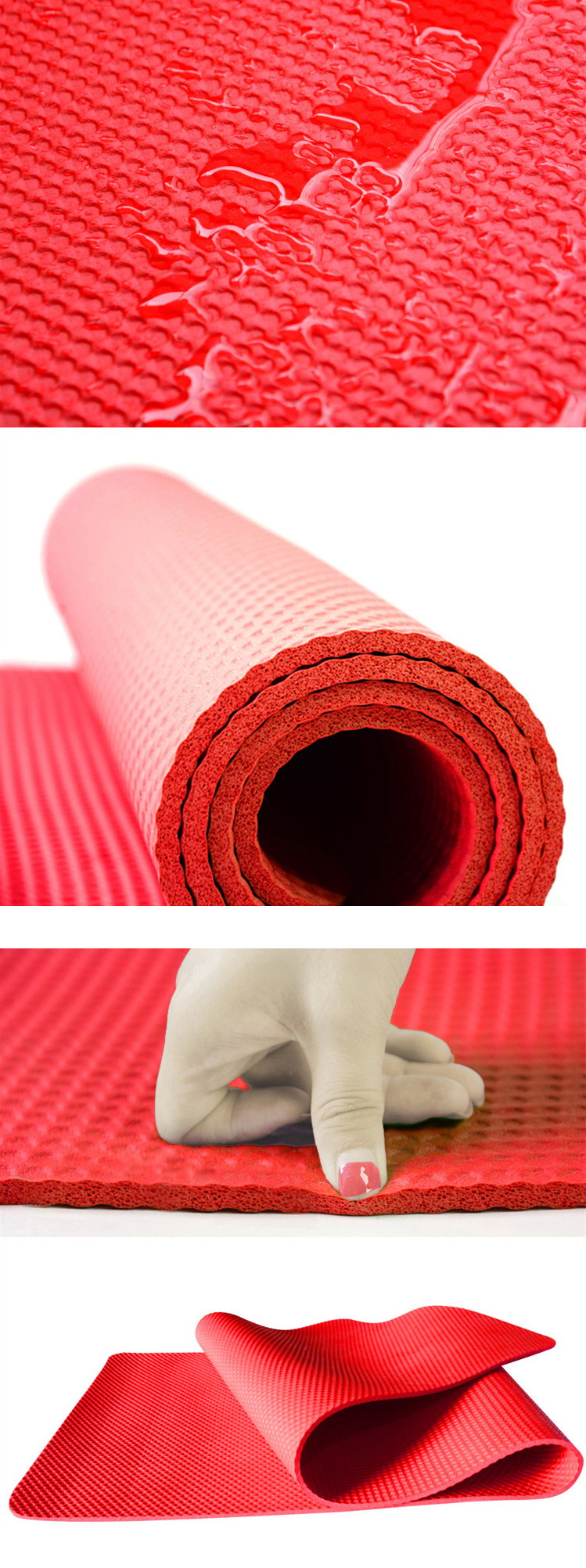 1. By new process, our rubber percent(40%) and closed-cell(90%) is much higher. So our mats have quite better elasticity, even long time to press it hardly, can recover quickly without impression.